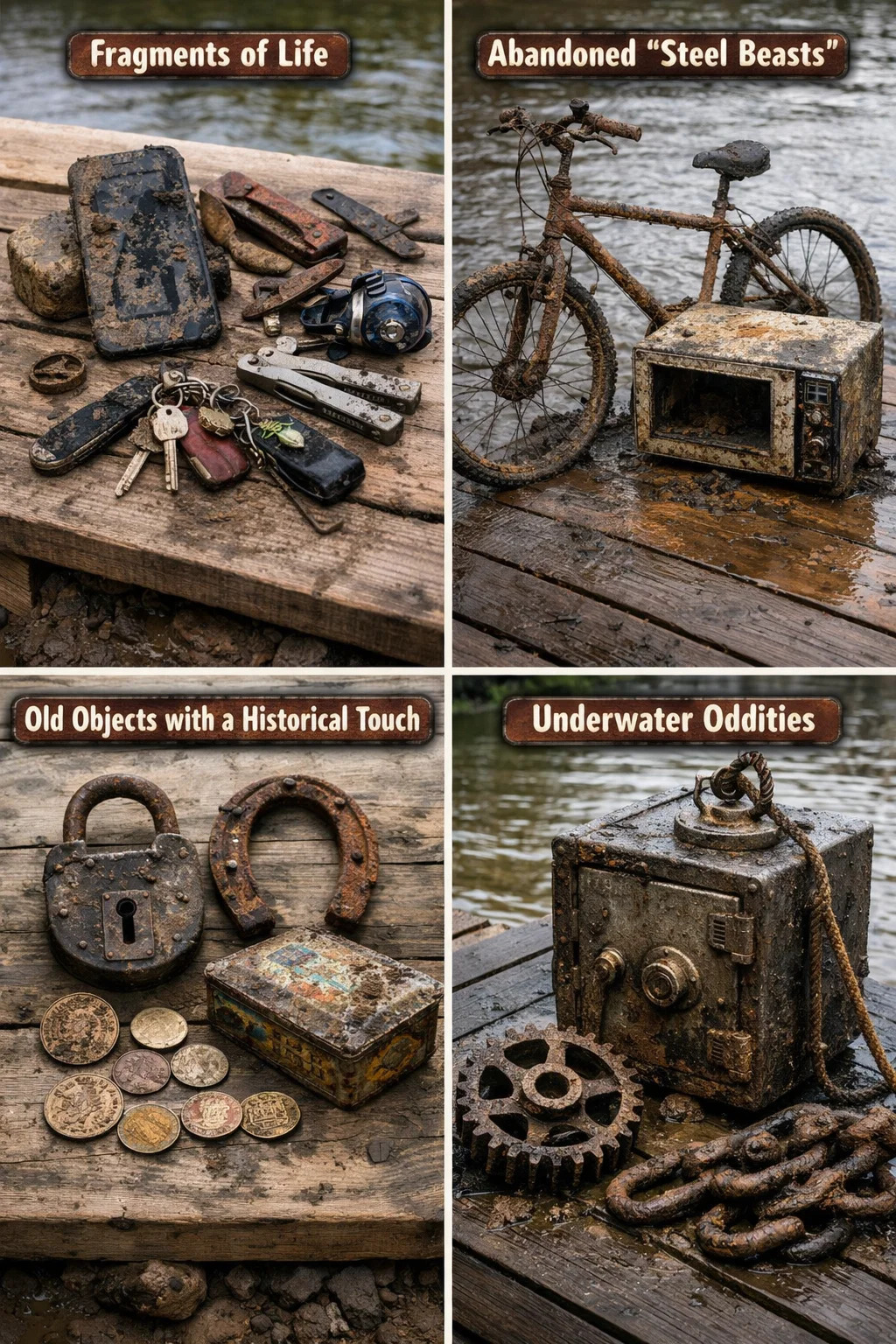 Denne aktiviteten er som en "metallskattejakt" under vann, og her er noen interessante funn som folk ofte møter: