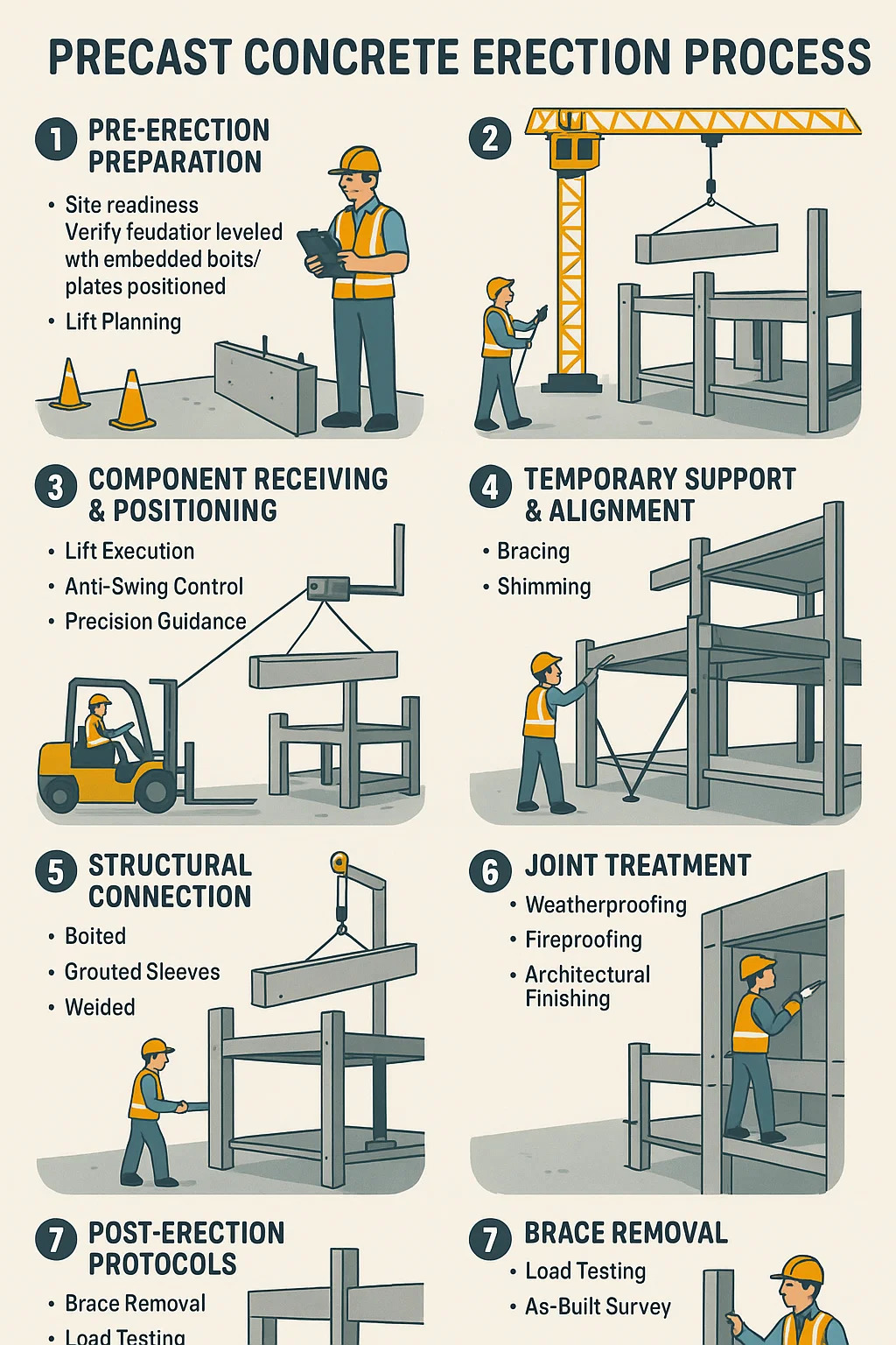 Fjerning av avstivere: Løsne midlertidige støtter først etter at tilkoblingene har fått full styrke.